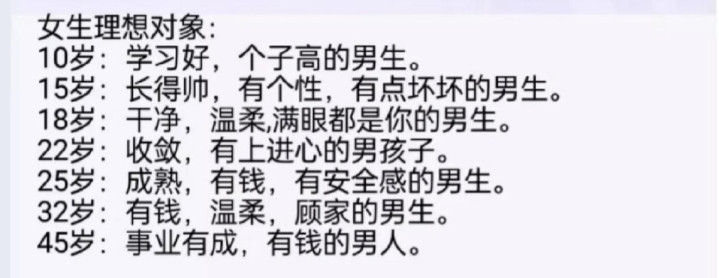 教育改变了她们的底气,也抬高了她们的标准。大学、研究生、海归,薪资不输同龄男性,经济独立之后,精神也想对等。她们要的不是“养”,而是“搭档”;不是“帮忙”,而是“共同承担”。一边是现实的工位,一边是电视剧和短视频里被无限放大的“理想男友”:高、帅、多金、专一、幽默,还懂家务。